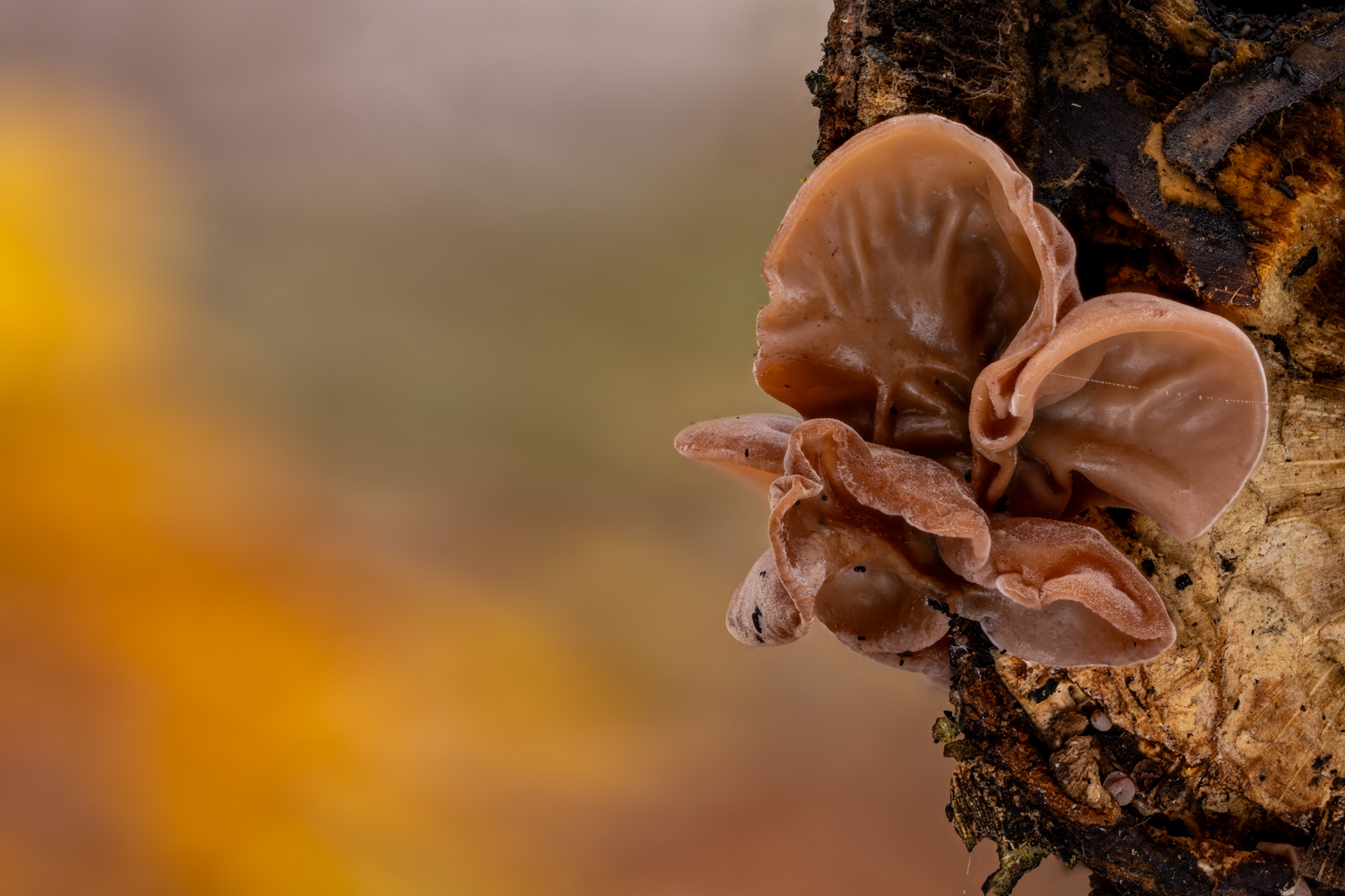 und einem Prachtexemplar Gallertfleischiger Fältling (Phlebia tremellosa):