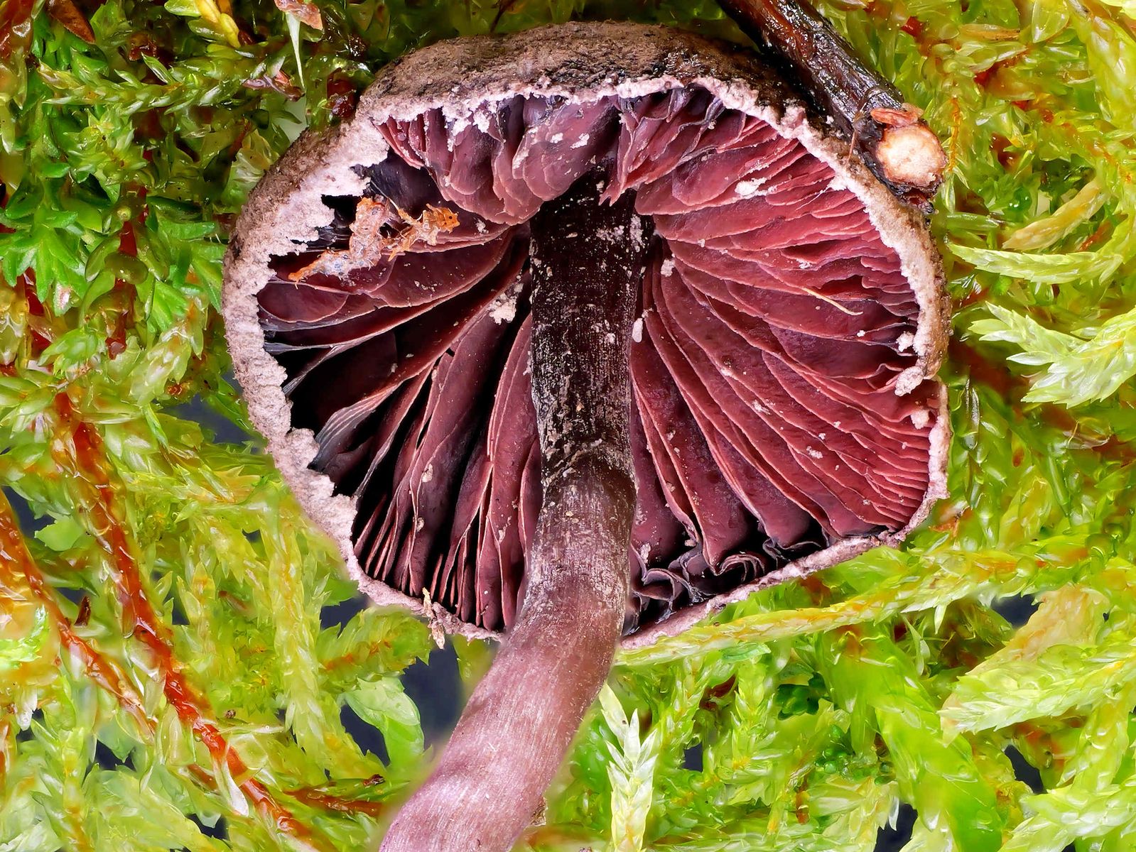 Ob wohl der Pilz nicht selten ist, fand ich nur das eine Exemplar. Und ich musste den Winzling noch ein paar Stunden mit mir herumtragen, bevor ich dann zu Hause knipsen konnte. Das sieht man am leider etwas eingetrockneten Hutrand.Hutdurchmesser 1,5 cm.
