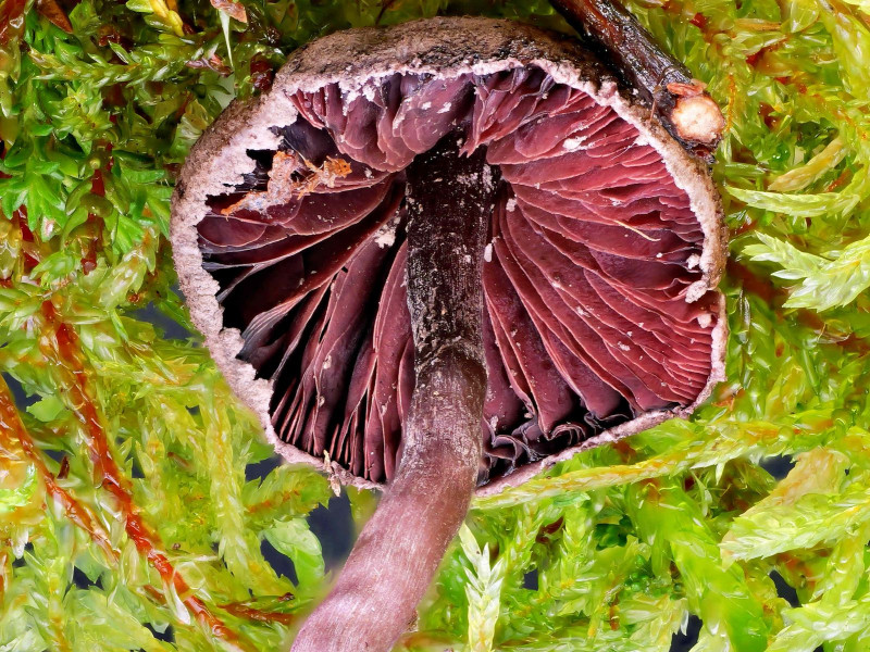 Ob wohl der Pilz nicht selten ist, fand ich nur das eine Exemplar. Und ich musste den Winzling noch ein paar Stunden mit mir herumtragen, bevor ich dann zu Hause knipsen konnte. Das sieht man am leider etwas eingetrockneten Hutrand.Hutdurchmesser 1,5 cm.