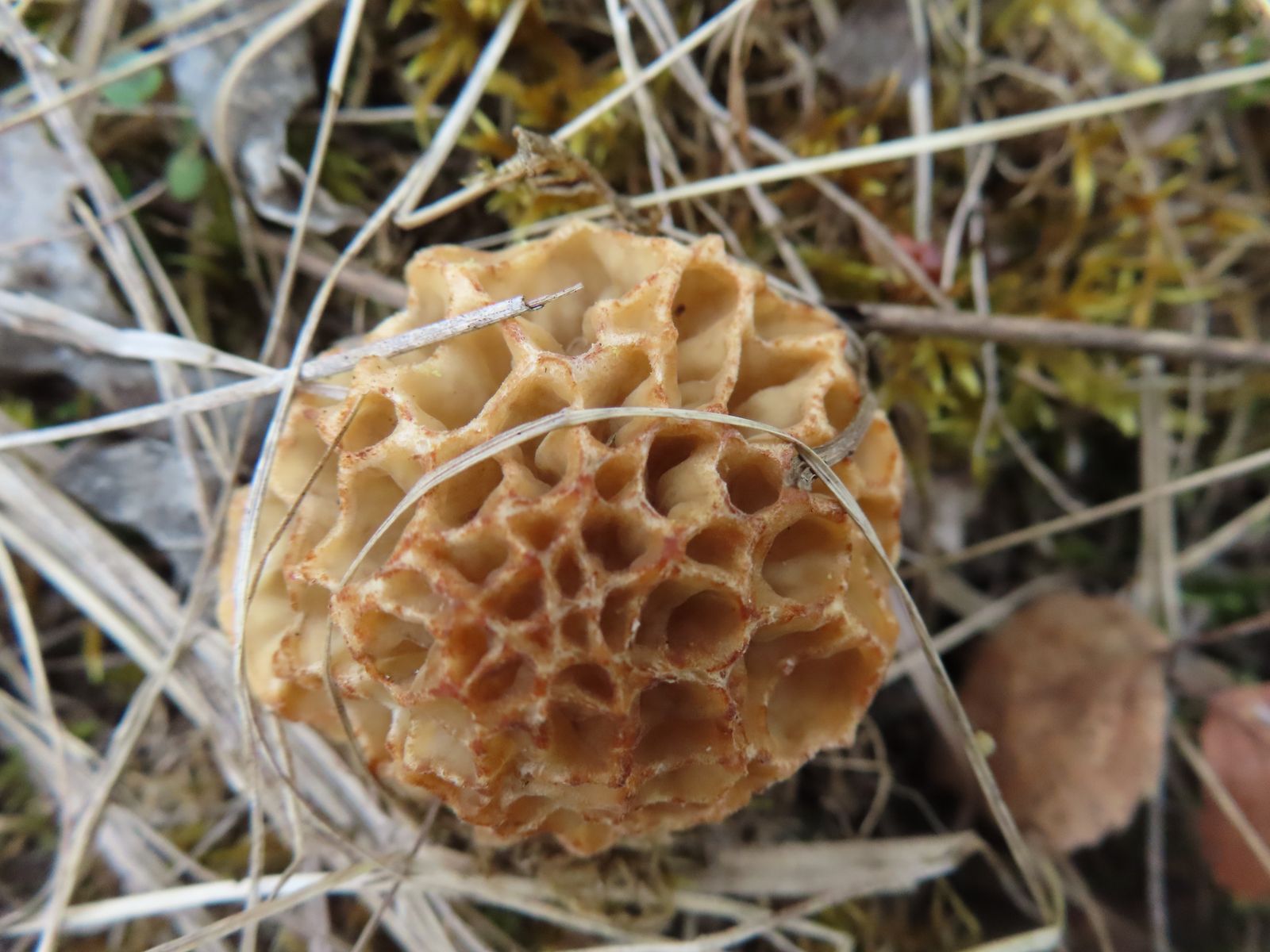 Und endlich, nach langer und frustrierender Suche, gab es als Krönung eine einzige Morchel, eine Miniaturmorchel von 1,5 cm Größe - aber es ist die einzige, die ich bislang finden konnte: