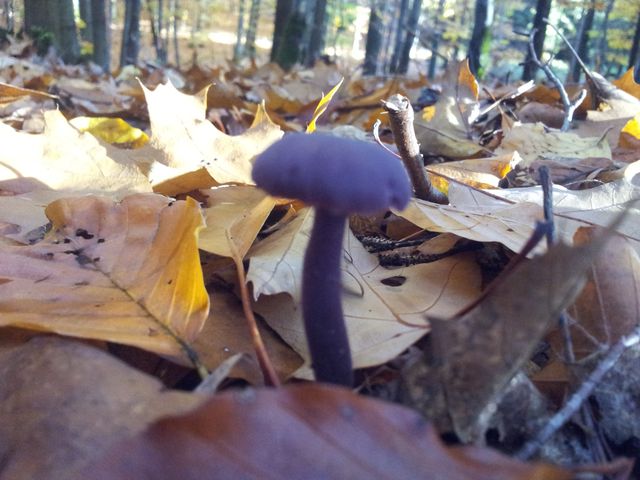 Der vermeintliche Lacktrichterling wurde zwischen Eicheln gefunden, wie man aber an den Blättern sieht, stehen wohl auch noch andere Bäume in der Nähe.