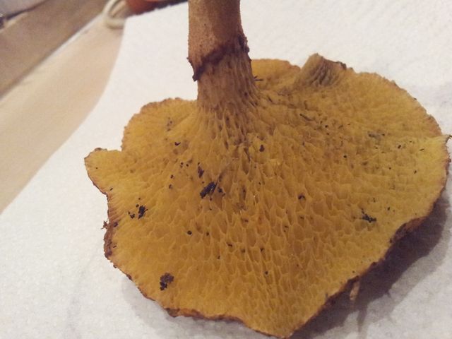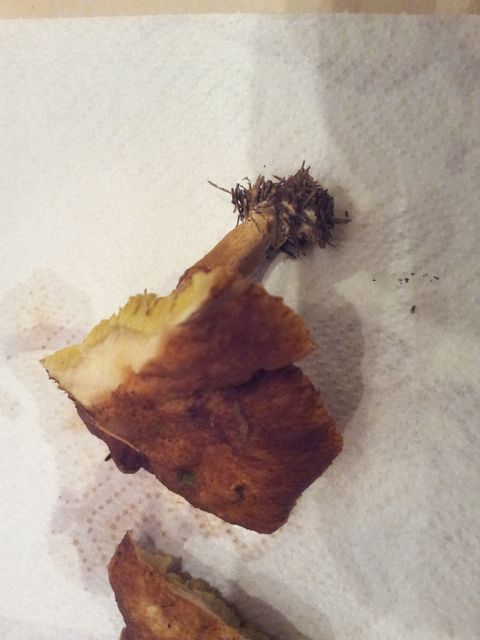 Beim Hohlfußröhrling stört mich eigentlich, dass die nächste Lärche doch sehr weit (ca. 20-30 m oder mehr) weg war, im direkten Umfeld waren nur Fichten.