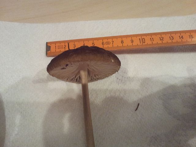 • Hey. Nach dem Wässern ist der Hut leicht schleimig, vgl. mit leicht feuten maronen, aber keinesfalls stark schleimig wie bei einem Schmierröhrling o.ä. Jetzt dachte ich, alles richtig gemacht zu haben (genaue Fundstellenbeschreibung, Sporenfarbe gecheckt, Bilder in allen variationen .... ) aber denkste ... der Stil ist nicht mehr im Haus. Hab nur den Hut zum Aussporen aufgehoben. :( Mit Nahaufnahmen vom Stil kann ich leider also nicht mehr dienen. Vielen Dank, Tom