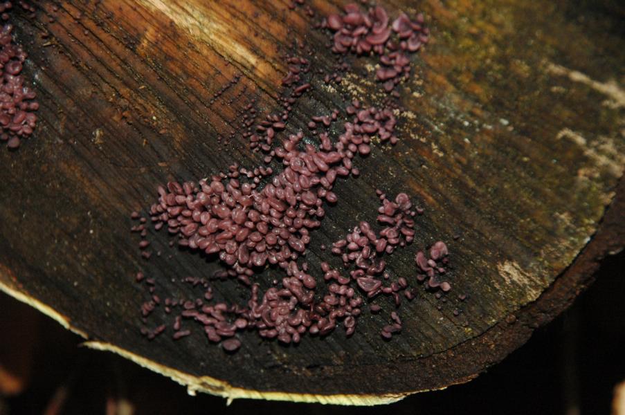 Dies hier würde ich für ein junges Stadium vom Violetten Schichtpilz (Chondrostereum purpureum) halten. Oder läßt sich da was verwechseln?