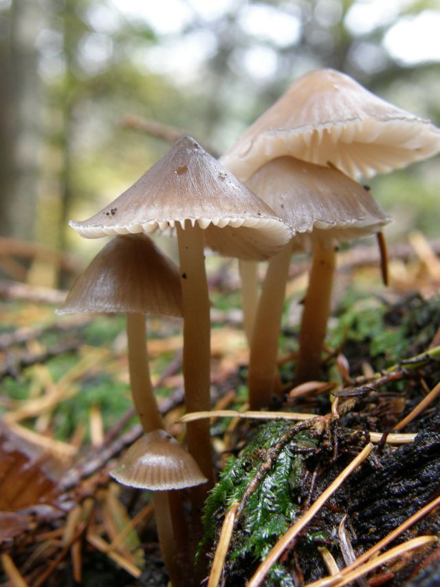 Den Anfang bilden - wie so oft - ein paar Helmlinge. Ich vermute hier die buntstieligen, Mycena Inclinata.
