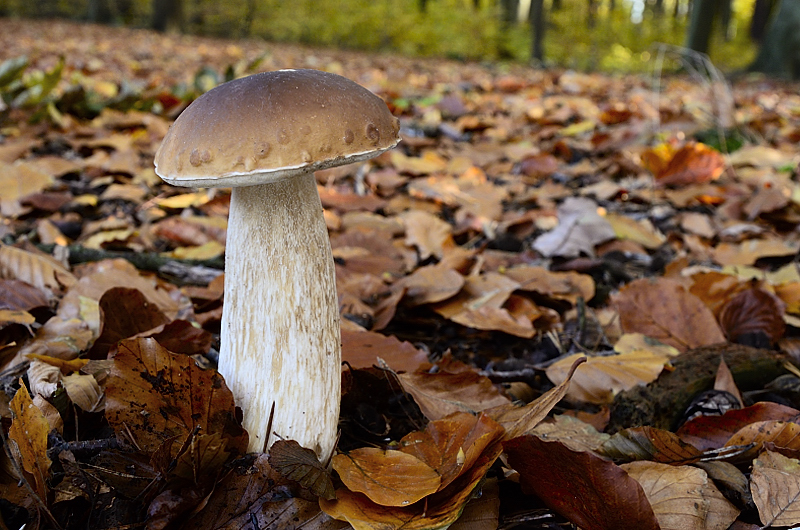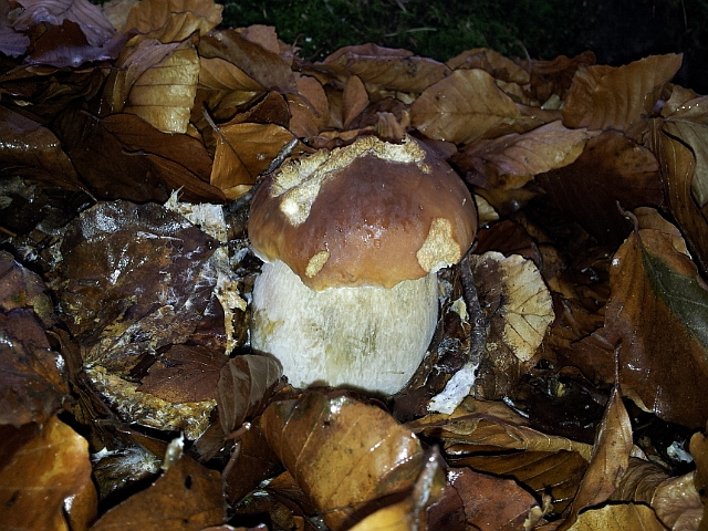Bisher wurden wir an der Küste mit Frost und Schnee verschont. Das liegt am großen "Warmwasserspeicher": Die Ostsee ist noch zu warm und lässt deswegen (noch) keine tiefen Temperaturen zu. Und noch besser: Der Trend für die nächsten drei Wochen: Mildes Wetter. Das ruft natürlich die Speisepilzsammer wieder auf den Plan, denn ohne Frost und Kälte sowie der dicken schützenden Blätterschicht am Boden sind Maronen, Herbst-Rotfußröhrlinge und Steinpilze etc. dann wahrscheinlich noch recht lange zu finden - vielleicht auch wieder bis in den Dezember hinein, wer weiß. Eine besondere Stelle, wo ich die Fichten-Steinpilze erst im Oktober finde, ist eine warme und geschützte Laubwaldkante unter Buchen. Hier habe ich vor ein paar Jahren meinen spätesten Steinpilzfund (06.Dezember) gemacht. Heute waren dort einige knackige Steinpilze vor Ort und für ein Foto waren sie auch bestens geeignet: