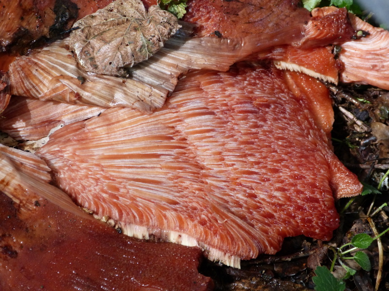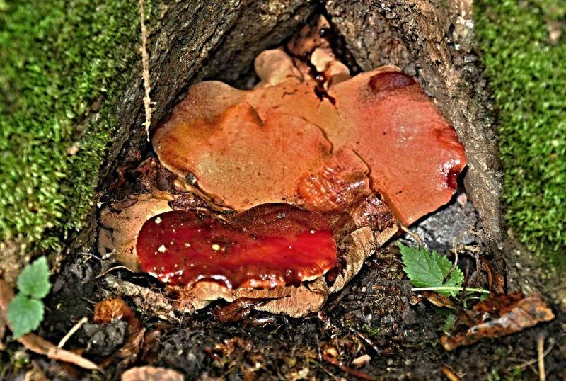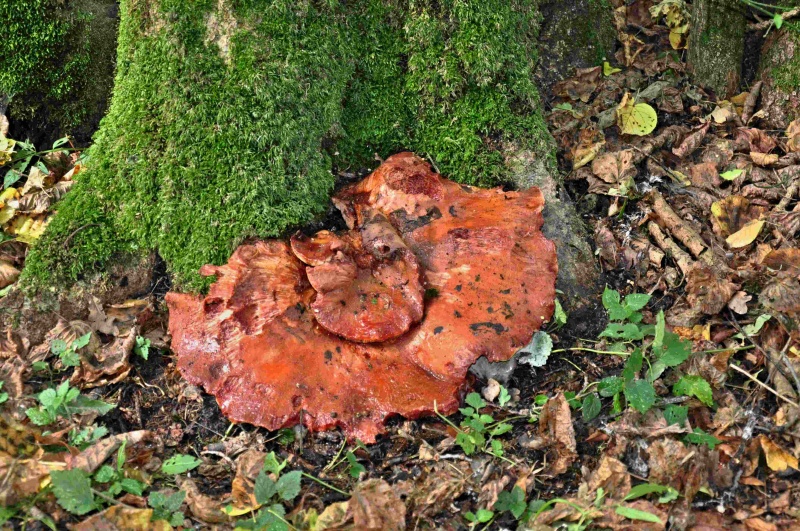 Hier ein Riesenexemplar von einem Leber-Reischling (Fistulina hepatica) an einer alten etwa 40m hohen Traubeneiche im Auwald in Oberschwaben, 60cm Breite!