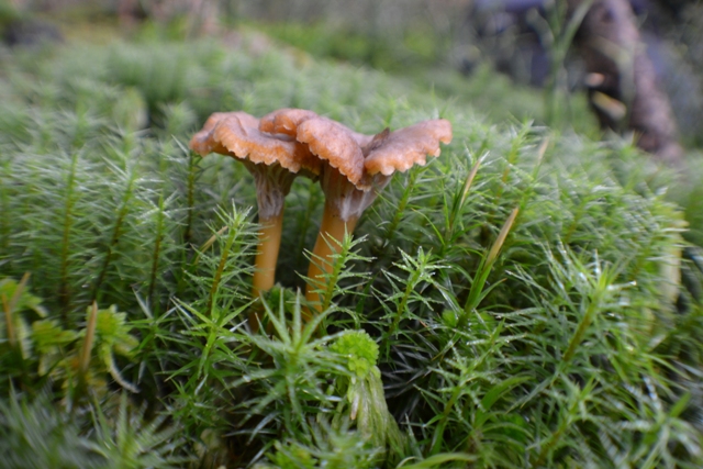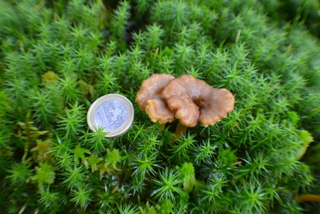 Ich vermute hier mal einen Trompetenpfillerling (Bild 1-2), und dann so was ähnliches, aber dene es ist ein anderer Pilz .