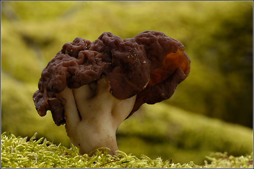War vorhin noch mal im Nadelwald. Da wuchsen die Lorcheln auf stark bemoosten und halb vergrabenen Kiefernstämmen. Es waren ca. 10 Exemplare,wobei dieses hier mit über 10 cm höhe, das größte war.