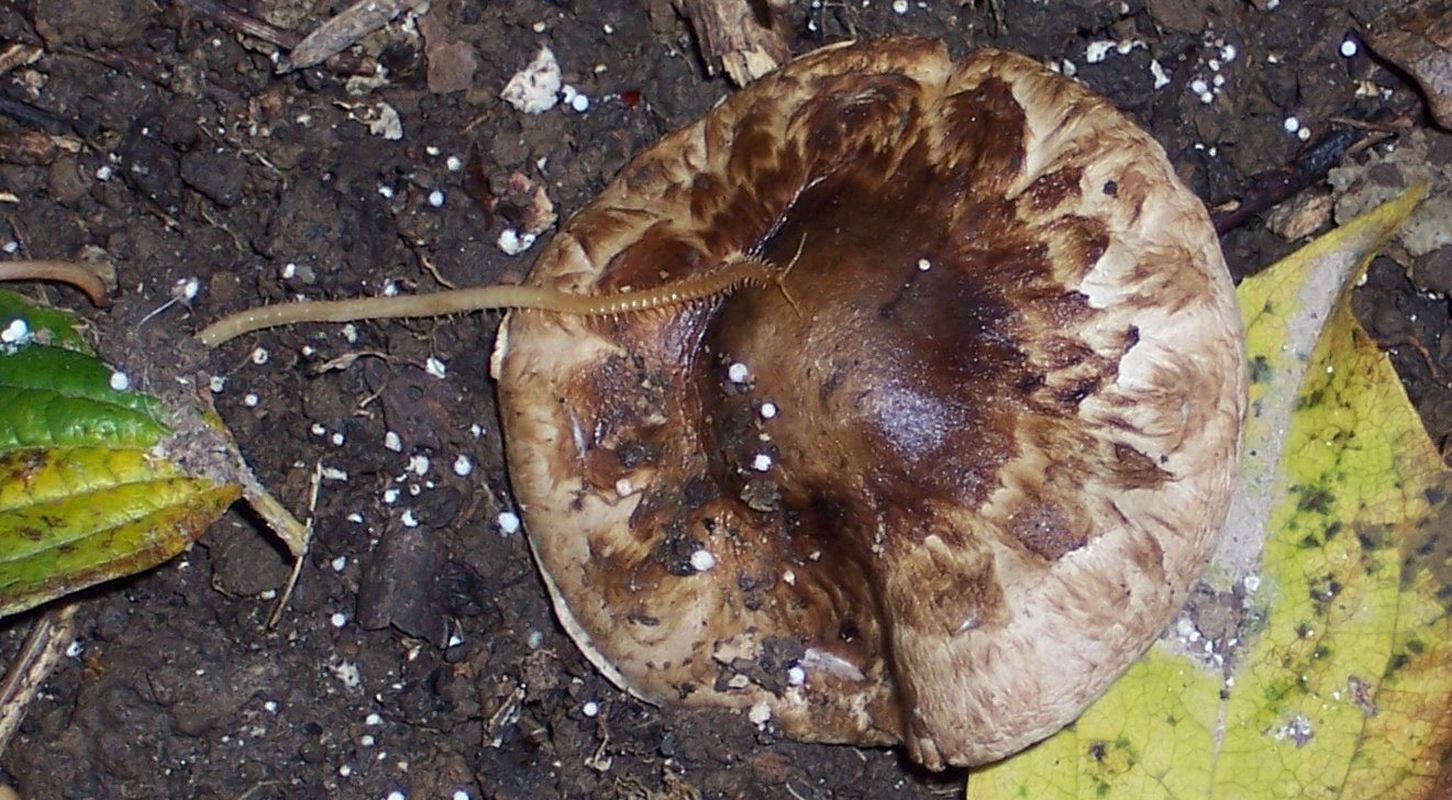 Der Pilz hatte einen hundertfüßigen oder tausendfüßigen Liebhaber :) Durchmesser des Huts: 5 cm.