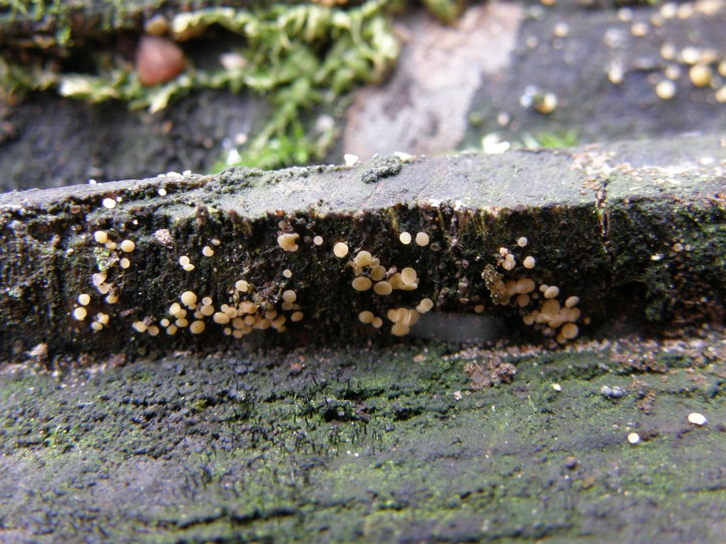 Ich denke nicht, daß es sich hier um Bisporella Citrina handelt. Die "kenne" ich schon etwas größer und vor allem wesentlich intensiver gefärbt. Eher erinnert mich das an einen Fund aus dem Sommer, der allerdings in einer Traktorfurche wuchs: