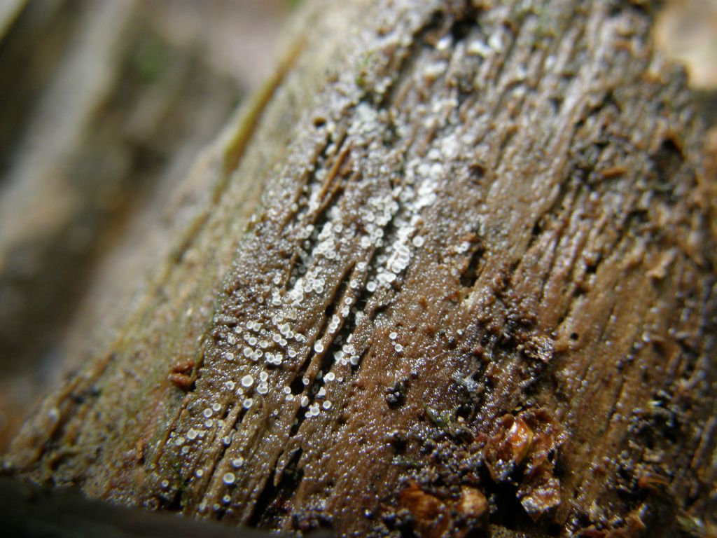 Diese Dinger habe ich alle für Schleimpilze gehalten. Wird aber das Konidienstadium der zerfließenden Gallertträne sein. Da war auch noch ein etwas größerer Glibber in der Art auf dem oben gezeigten Stamm. Aber der wollte nicht scharf werden.