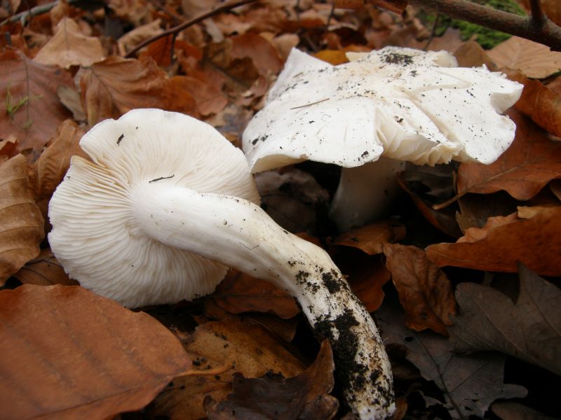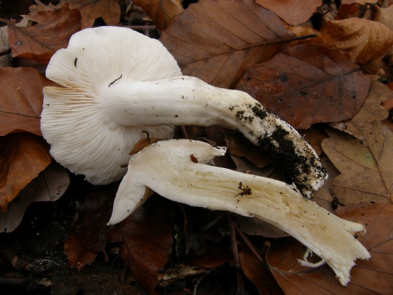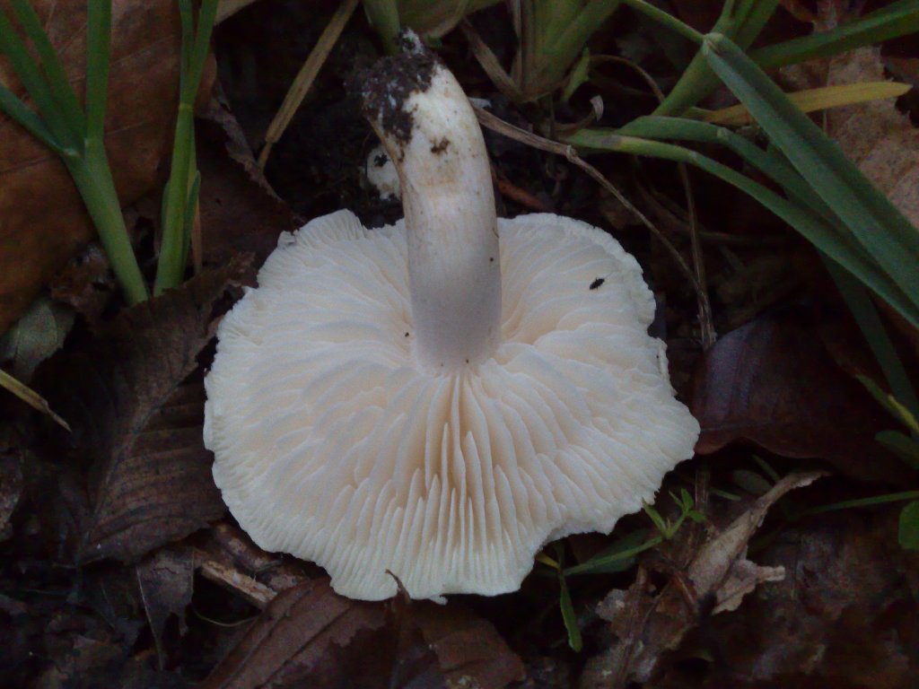 Darunter gab es einen, der auch einzeln stehend in Gruppen auftauchete und bei besonders gut "gedüngten" Boden eine weiße Farbe besitzt. Die Wurzelbasis konnte sehr lang werden : Der Knorpelige Kneuelrasling Lyophyllum loricatum