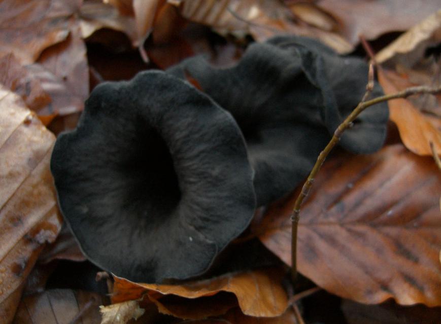 (Cantharellus cinereus) und mitgeführter Lupe, konnte ich mir sicher sein, nicht eines dieser raren Exemplare mit zu nehmen.
