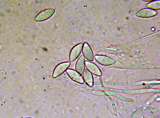 Die reifen Sporen sind fast opak. Das Epispor ist fein granuliert, z.T. rissig. Die Sporen haben auffallend identische Maße.