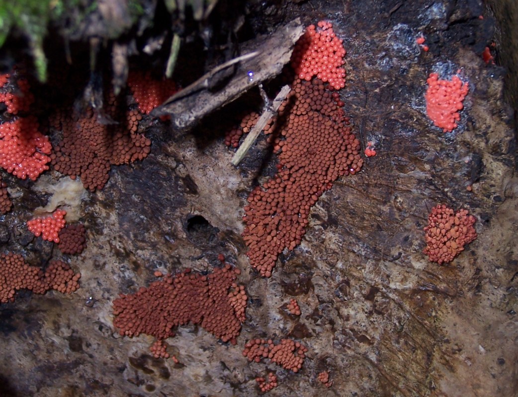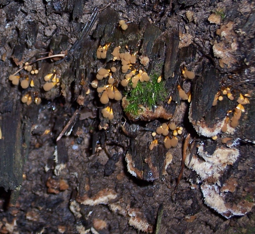 Auf Ceratomyxia fruticulosa wäre ich nicht gekommen. Ich hatte das einfach für einen weißen Belag auf dem Moos gehalten.