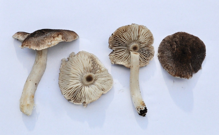 Lamellen: hellgrau, untermischt, mäßig dicht stehend, am Stiel frei angewachsen