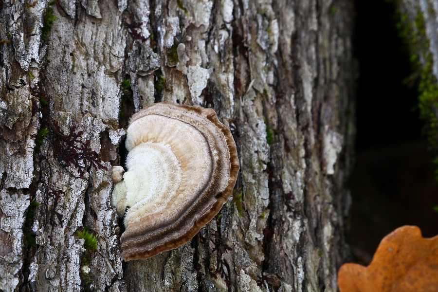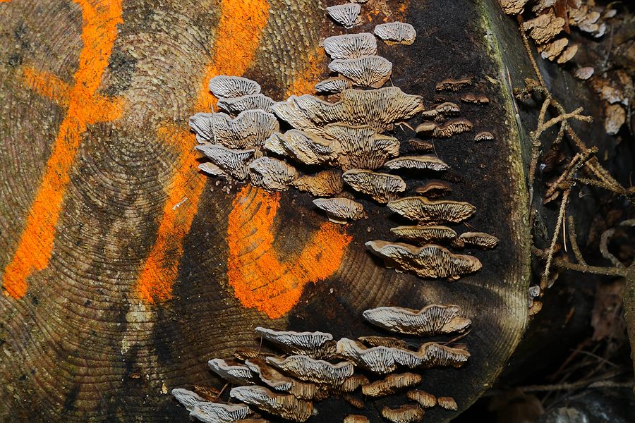 Der Holz-Lagerbestand war gemischt (Buche, Eiche, Fichte). Das Substrat des Blättlings war aber vermutlich Apfelbaum.