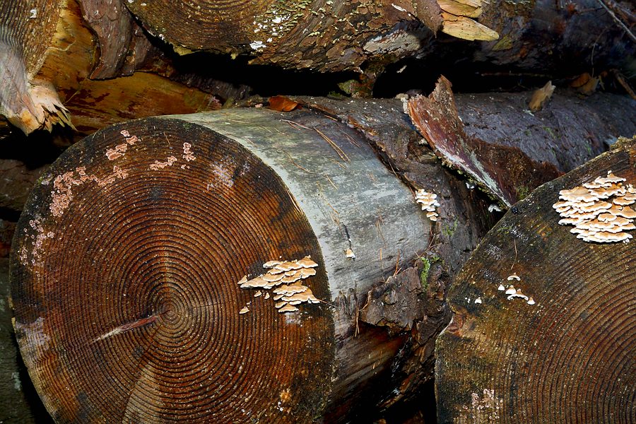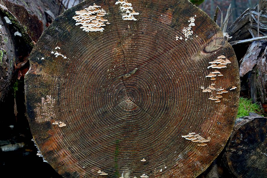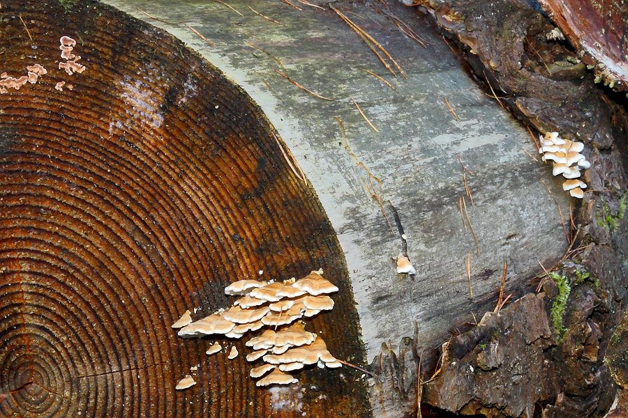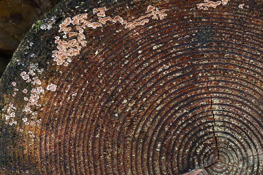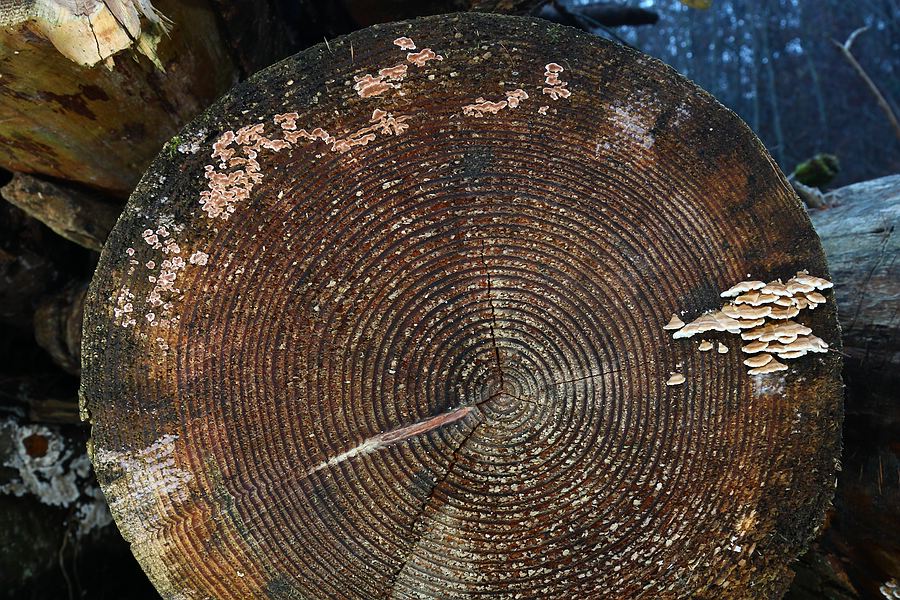 In verschiedenen Vergrößerungen kann man noch ein paar Dinge mehr erkennen, die man vor Ort nicht so ohne Weiteres zur Kenntnis nimmt, z. B. diverse Schleimpilze, diverse Farbabstufungen der Jahresringe etc...