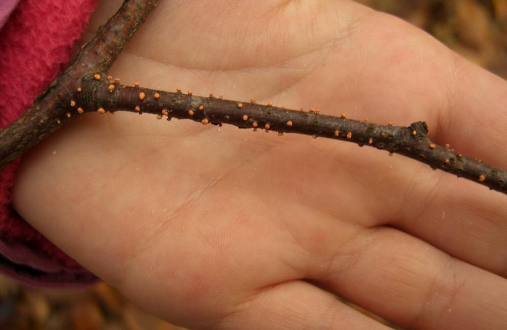 Bild zwei zeigt die Nebenfruchtform vom Zinnoberroten Pustelpilz (Nectria cinnabarina).