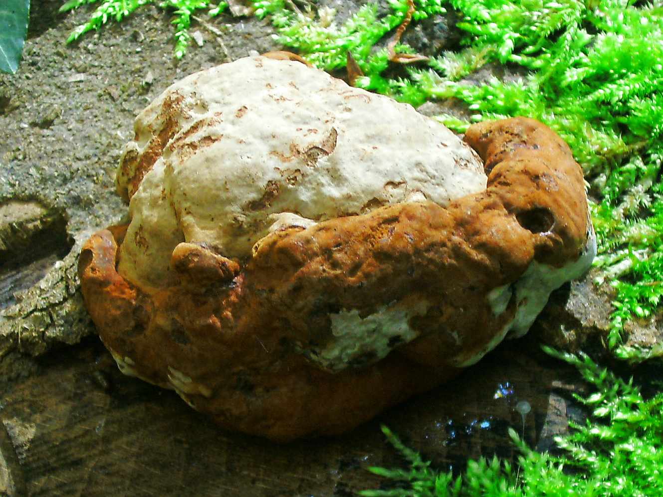 Kleiner rundlicher Pilz (ca. 5 cm Durchmesser) an Buchenstumpf. Hier bin ich nicht ganz sicher, ob es Fomes ist oder doch etwas anderes (Fomitopsis) ?