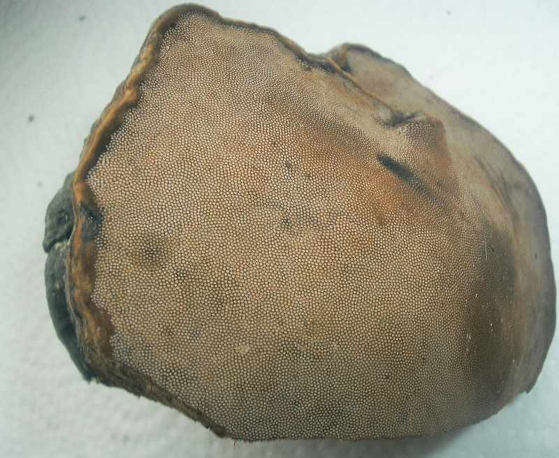 Besonders bei Verdacht auf Fomitopsis auch den "Brutzeltest" machen (braucht's auch zur Beurteilung verschiedener Ganoderma-Arten) und mal mit einer Flamme die Hutoberfläche austesten!