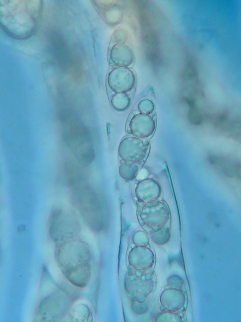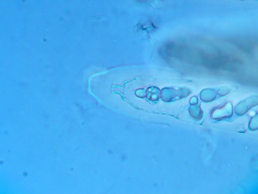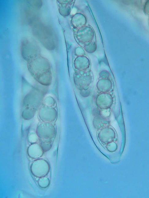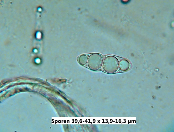 Die andere braune Sporen mit einseitiger Keimspalte, unsiseriat im Ascus liegend.