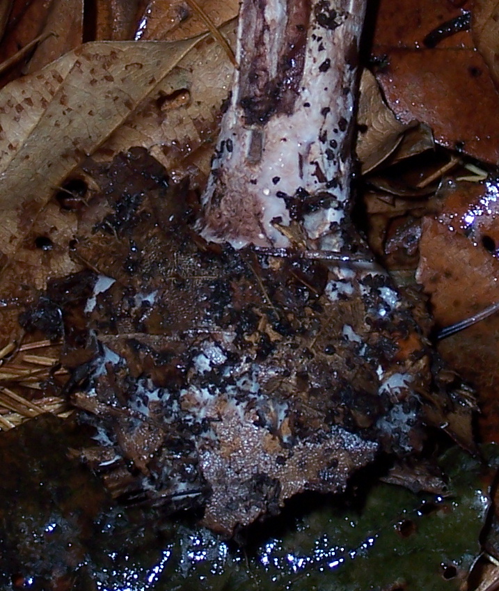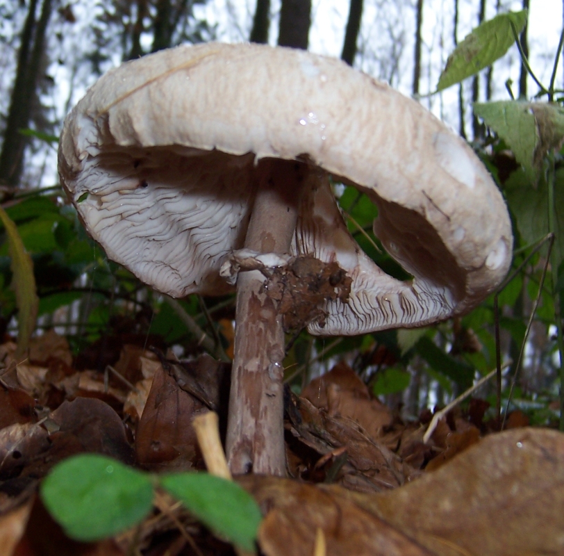 Die Lamellen sind rötlich gefleckt. Kann man über die Sporenfarbe spekulieren? Ich traue es mir nicht zu, weil ich keine Vergleiche habe.