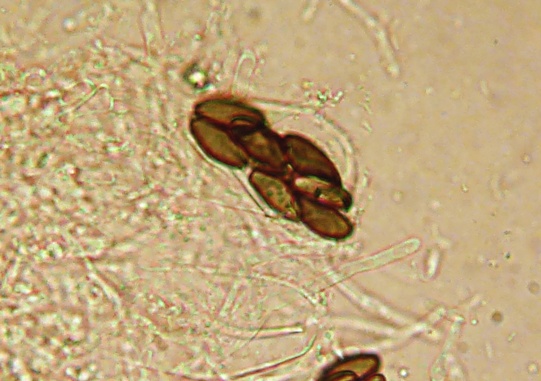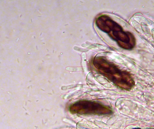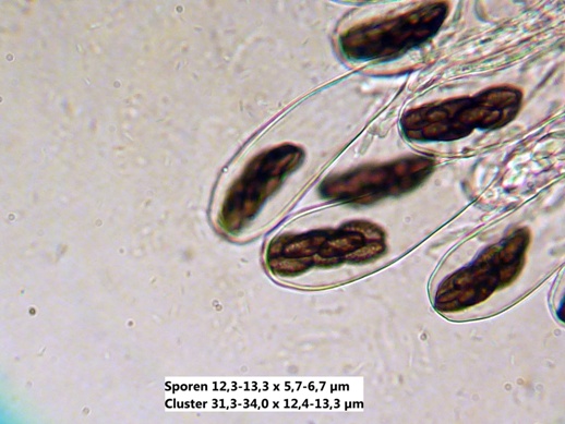 Sporen: (13)14-16 x 6-8 µm, dtl. isoliert grobwarzig, Warzen 1-2 µm.