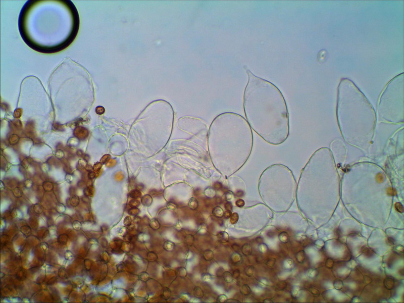 Zuerst dachte ich, es handelt sich um Coprinus tuberosus, wegen der runzeligen Sporenform und den Chz. Aber die Sporen sind zu klein und einen Geruch konnte ich nicht feststellen. Eine weitere Option wäre Cortinarius tuberosus, vielleicht kann der Name bestätigt werden. Leider habe ich nach keinen Sclerotium im Misthaufen bzw. dungdurchträngten Strohballen gesucht.