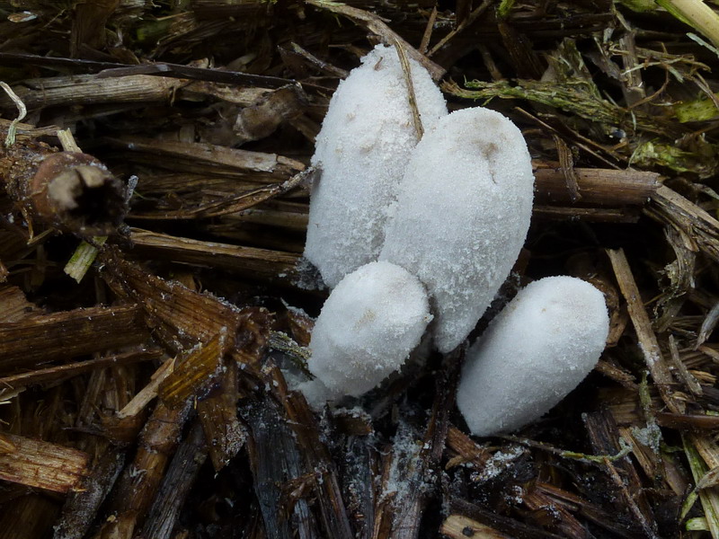 Zuerst dachte ich, es handelt sich um Coprinus tuberosus, wegen der runzeligen Sporenform und den Chz. Aber die Sporen sind zu klein und einen Geruch konnte ich nicht feststellen. Eine weitere Option wäre Cortinarius tuberosus, vielleicht kann der Name bestätigt werden. Leider habe ich nach keinen Sclerotium im Misthaufen bzw. dungdurchträngten Strohballen gesucht.