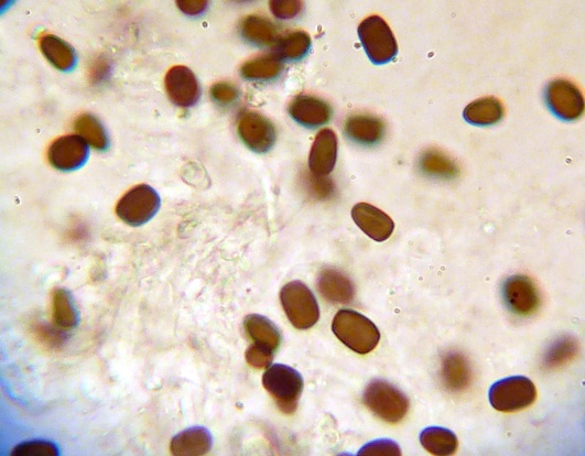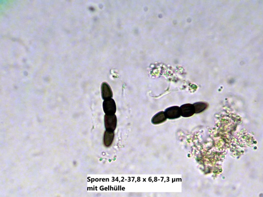 Gefunden auf Rehdung, fiel mir das Ding schon auf, weil es fast vollständig aufgewachsen war. Die Sporen haben eine parallele Keimspalte mit einem ganz leichten Knick oder Schwung, nur wahrzunehmen wenn man mit dem Mikroskop hin und her fokussiert.