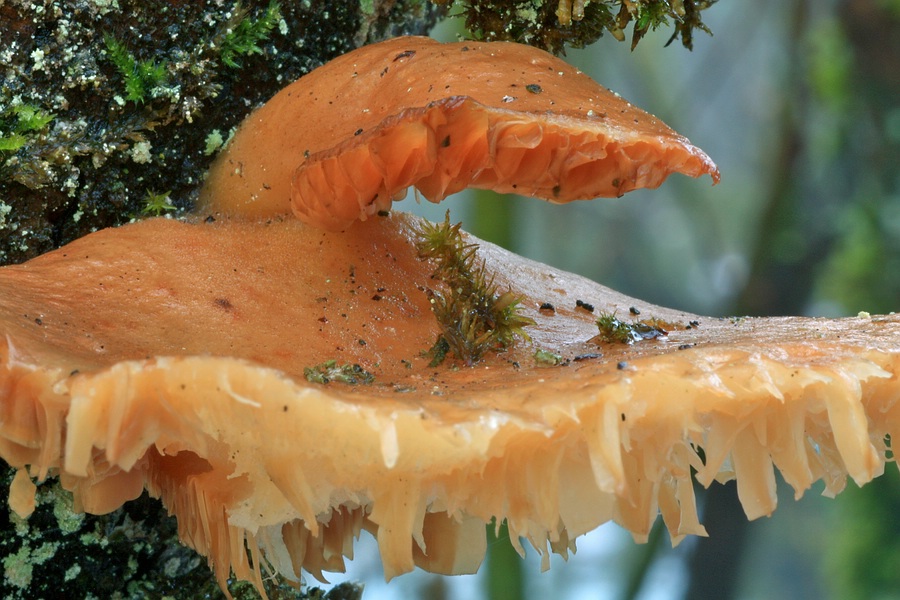 Da war ich mit dem Polsterpilz beschäftigt und habe (ergebnislos) den Baumstumpf nach der Hauptfruchtform abgesucht. Eigentlich dachte ich bei dem blauen Ding an sowas wie Oligoporus Caesia, aber mit dem Gestachel da unten? Kann eigentlich nicht sein, oder?
