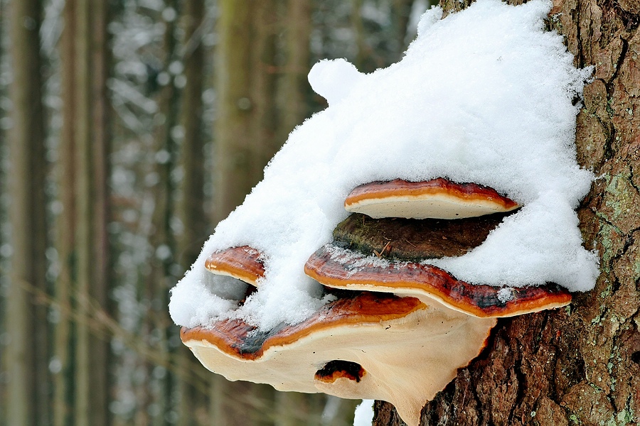Fangen wir doch mal mit Fomitopsis pinicola, dem rotrandigen Baumschwamm an. Er war der erste, bei dem mir im Wald plötzlich der deutsche Name abhanden gekommen war und der lateinische Name wie selbstverständlich an seine Stelle trat