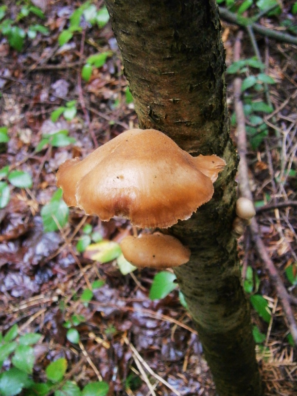 ich habe heute an einem relativ dünnen abgestorbenen Laubholzstamm (evt. Birke) diese Seitlinge mit braunem Hut gefunden.