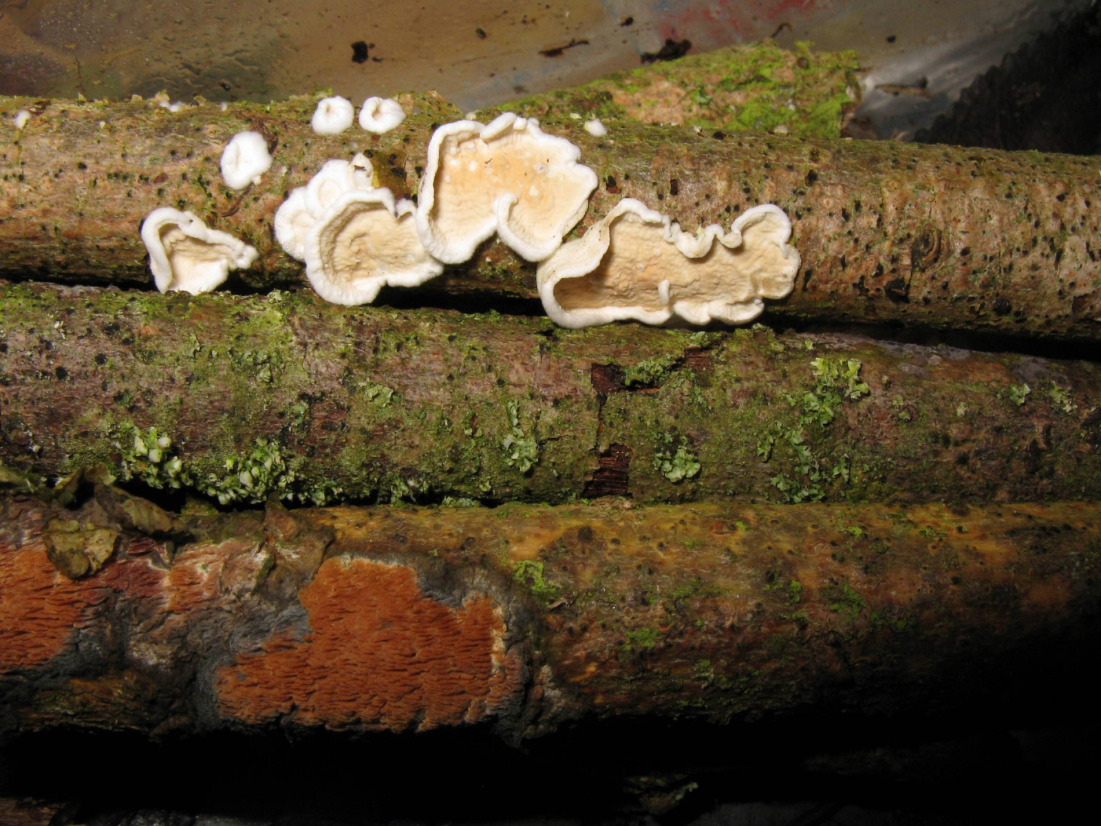 Siehe Björns Beitrag mit dem Schleimpilz, der der armen netten Phlebia den Garaus macht und die Beiträge über das parasitierende Verhalten der Tremella-Arten.