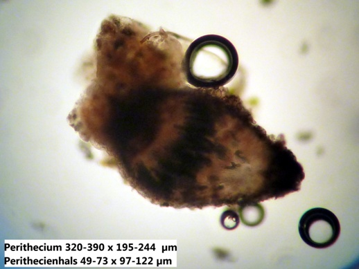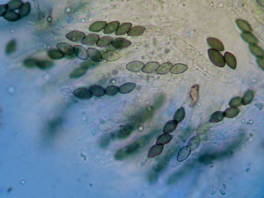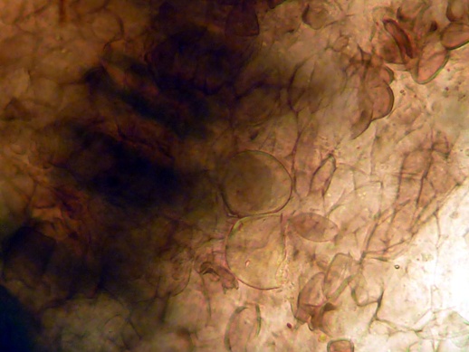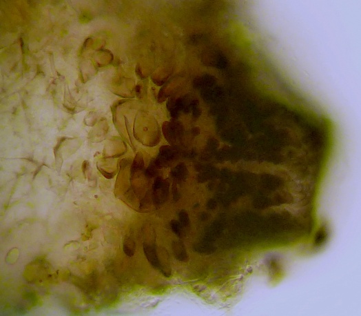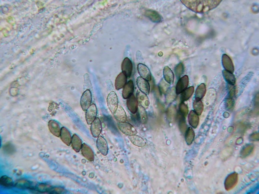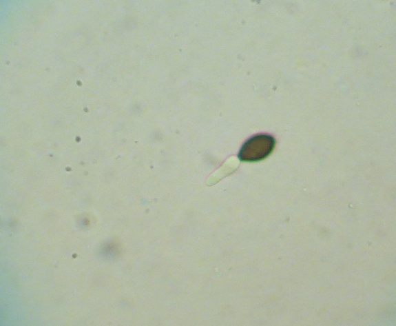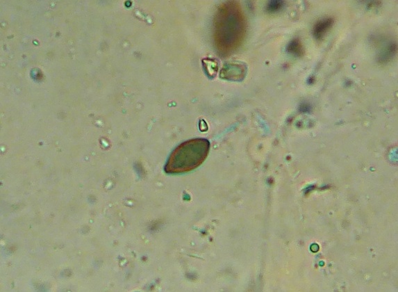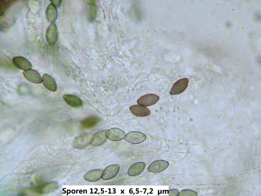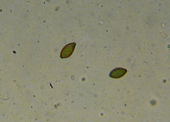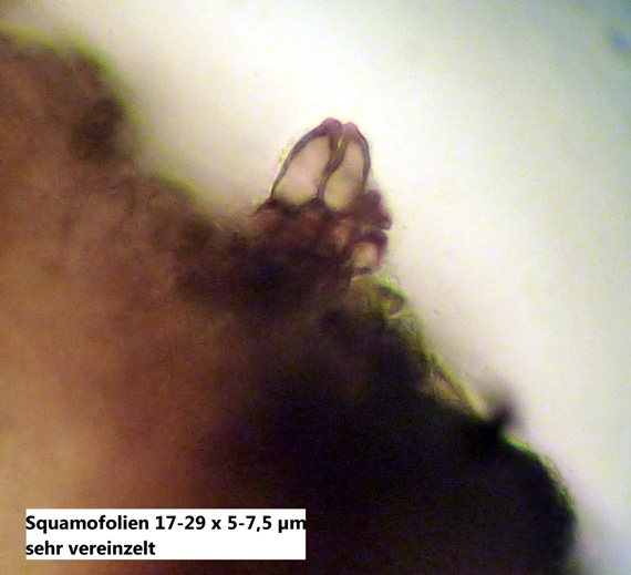 Interessant ist, dass die reifen (dunklen) Sporen wesentlich kleiner sind, als die unreifen (helleren) und dazu auch noch ziemlich gleichmäßig in der Größe. Die Caudae ließen sich kaum erkennen, mal sehen ob ich da noch weitere von finde, bei denen ich das besser zeigen kann. Auch sind die Sporen sehr unregelmäßig geformt.