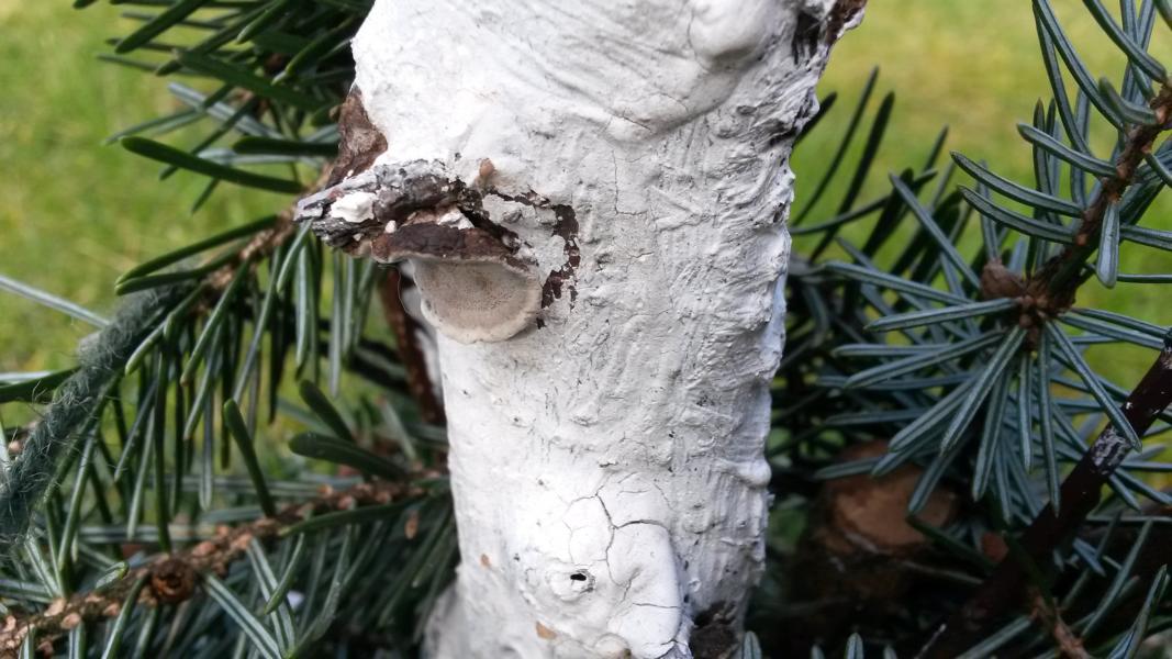 Außerdem sind diese "Pusteln" oder heranwachsenden Fruchtkörper auch durch den Wundverschluss oben am Stamm gedrungen
