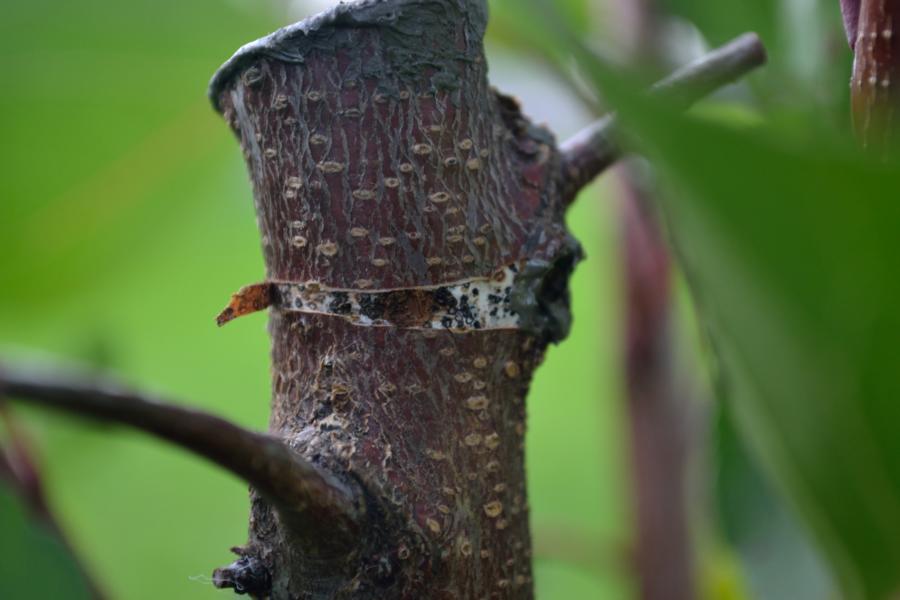 In diesem Herbst begann die Rinde direkt oberhalb der Veredelung aufzureißen und nun entwickeln sich kleine FK wie auf den Fotos zu sehen.