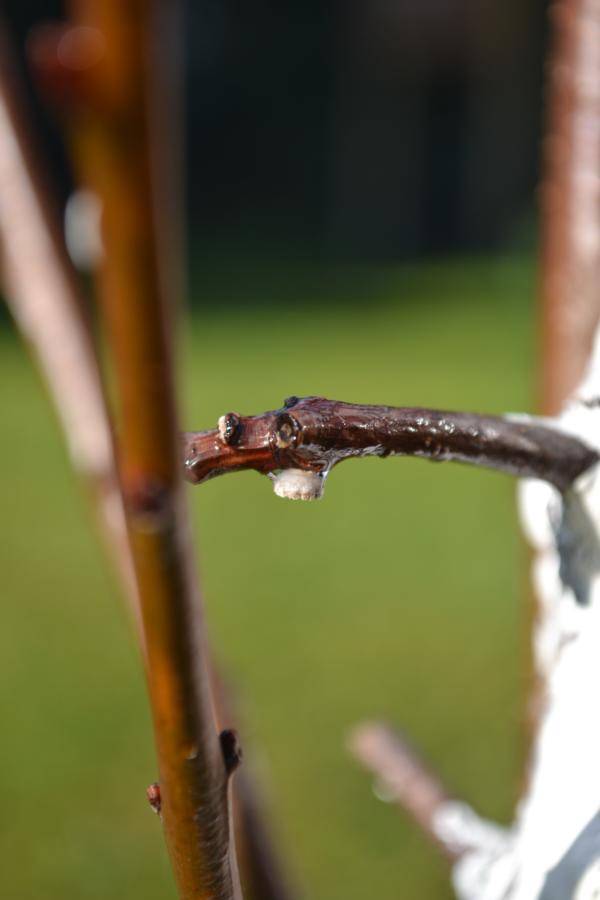 Im dritten Jahr hat er reichlich Früchte getragen, danach nur noch einzelne oder keine und die Blätter und dünnen Zweige waren im Sommer immer dezent welk. Außerdem bekam er Gummifluß.