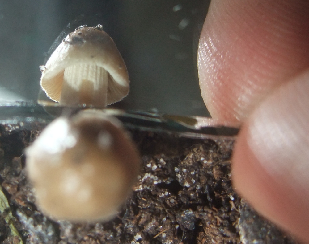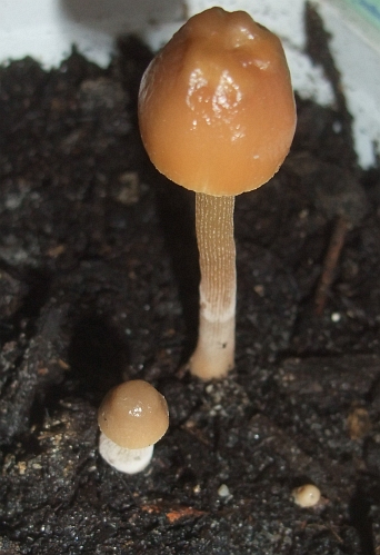 du kannst von einem Samthäubchen, Conocybe spec. ausgehen. Hier gibt die ein oder andere Art, die gern auch mal in der Wohnung in Blumentöpfen vorkommt, mir fällt jetzt z. B. Conocybe ricknenii ein, aber es gibt noch andere. Mit ein ein Bisschen Glück sieht pilzmel deinen Beitrag, du kannst ihn aber auch selbst darauf aufmerksam machen, er kennt sich in diesem Bereich sehr gut aus.