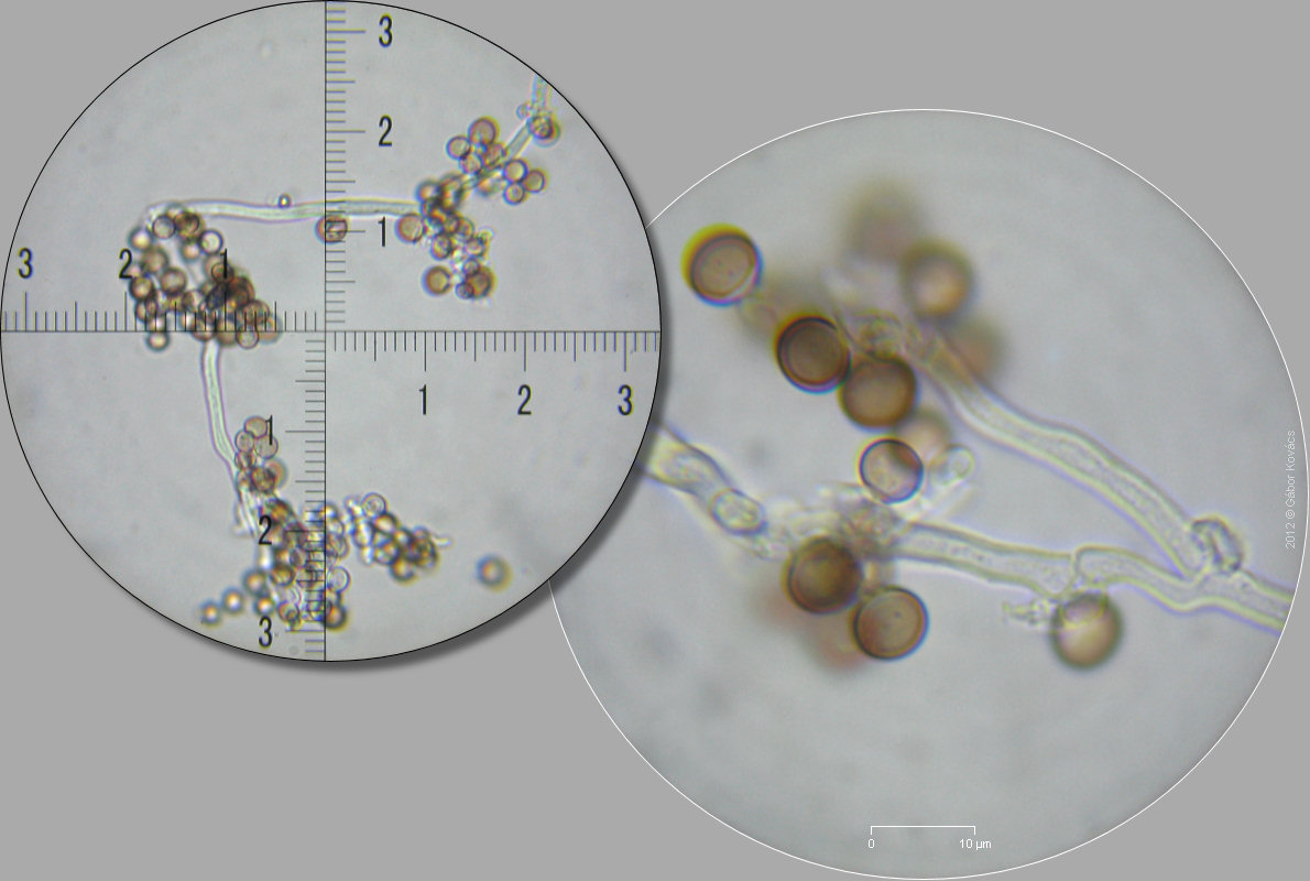 Rechts sieht man schon die Sporen aus den milllimetergroßen "Früchten" quellen.