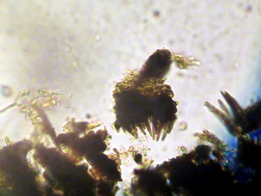 Kugelrunde Perithecien mit kleinen Stachelbüscheln.
