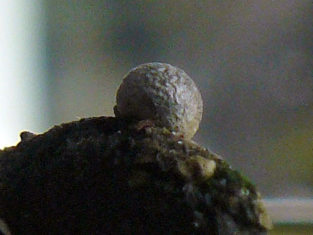 Die Kügelchen sind erst weiß, und werden dann antrazietfarbig bis beinahe schwarz. Sie sind bis ca 3 mm groß. Die Außenhaut ist wie Papier und lichtundurchlässig.