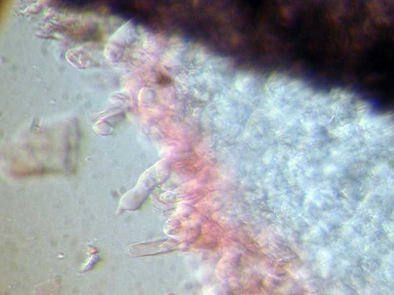 Leider habe ich nicht soviel microscopische Erfahrung, dass ich bei den kleinen Fungis einbahnfreie Präperate von den verschiedenen Schichten des Excipulums hingekommen würde.