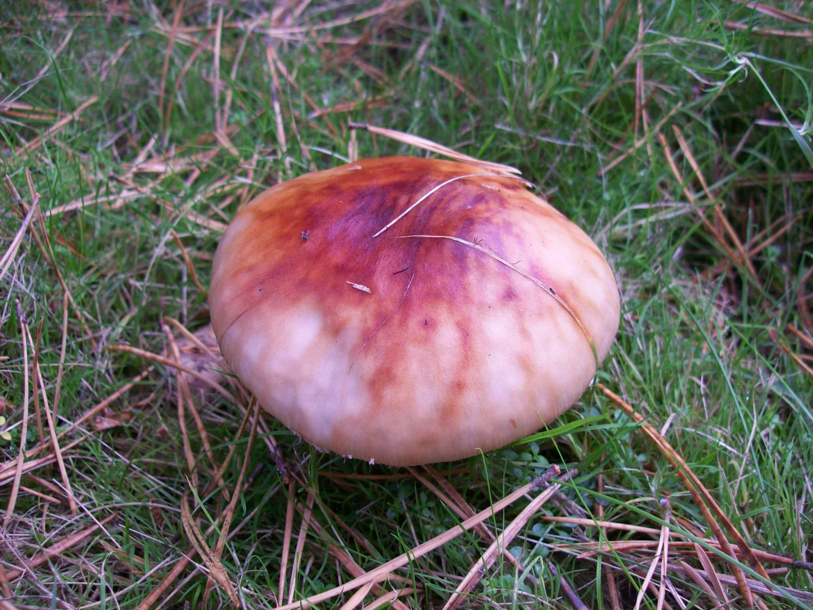 Hut:sehr variabel, in Weiß- Grau- und Brauntönen, meist aber auch mit mehr oder weniger stark ausgeprägter rosa –“ rötlicher Färbung. Diese Rottöne finden sich idR auch unter der Huthaut. Diese ist abziehbar. Die Hutoberfläche ist glatt, bei Nässe auch etwas schmierig und mit vergänglichen grauen, grauweißen oder sogar bräunlichen Velumresten bedeckt. Der Hutrand ist meist ungerieft, nur bei Trockenheit und schmächtigen Wuchsformen wird selten eine leichte Riefung erkennbar. Die Hutgröße ist ebenfalls sehr variabel. Es existieren Zwergformen, die auch voll ausgewachsen kaum Hutdurchmesser von 5cm erreichen. Andere Exemplare haben einen mehr als 20 cm breiten Hut.