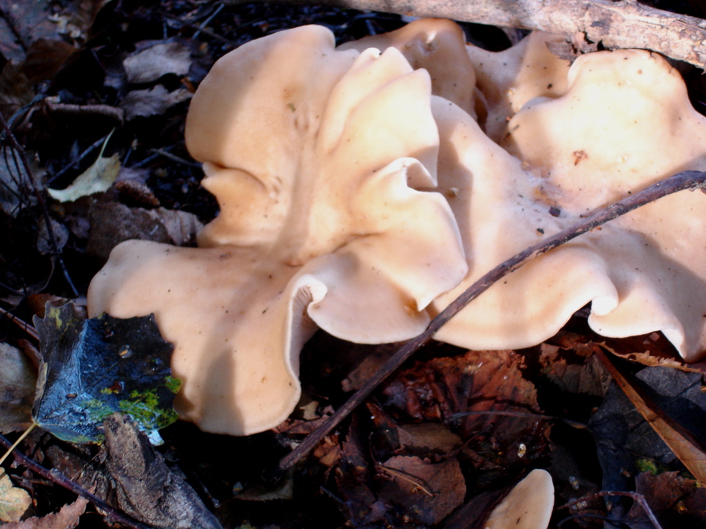 Da du völlig auf die Angaben irgendwelcher Merkmale oder Auffälligkeiten verzichtest, kann ich nur gefühlsmäßig antworten. Und da geht ´s mir wie Roland: für das Alter passen mir die Farben (Hut, Stiel, Lamellen) und die stark welligen Hüte nicht für Lepista flaccida (Fuchsiger Rötelritterling).