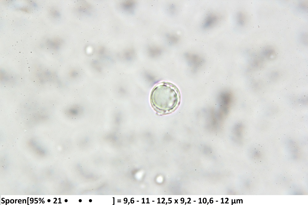 Die Sporen dieses Pilzes waren 10-11,25 µm groß und größtenteils rund.