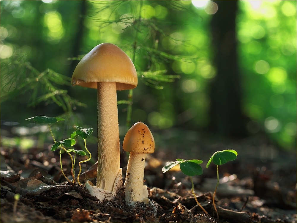 Der Pilz mit dem kleineren Hut ist die Amanita crocea. Bei der anderen Amanita ist der Stielring während der Fotosession schon abgegriffen worden. Wie das in natura auch mal gerne vorkommt. Ring nicht mehr vorhanden. 8|