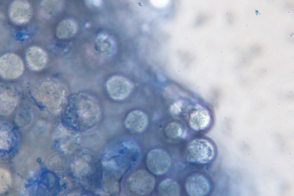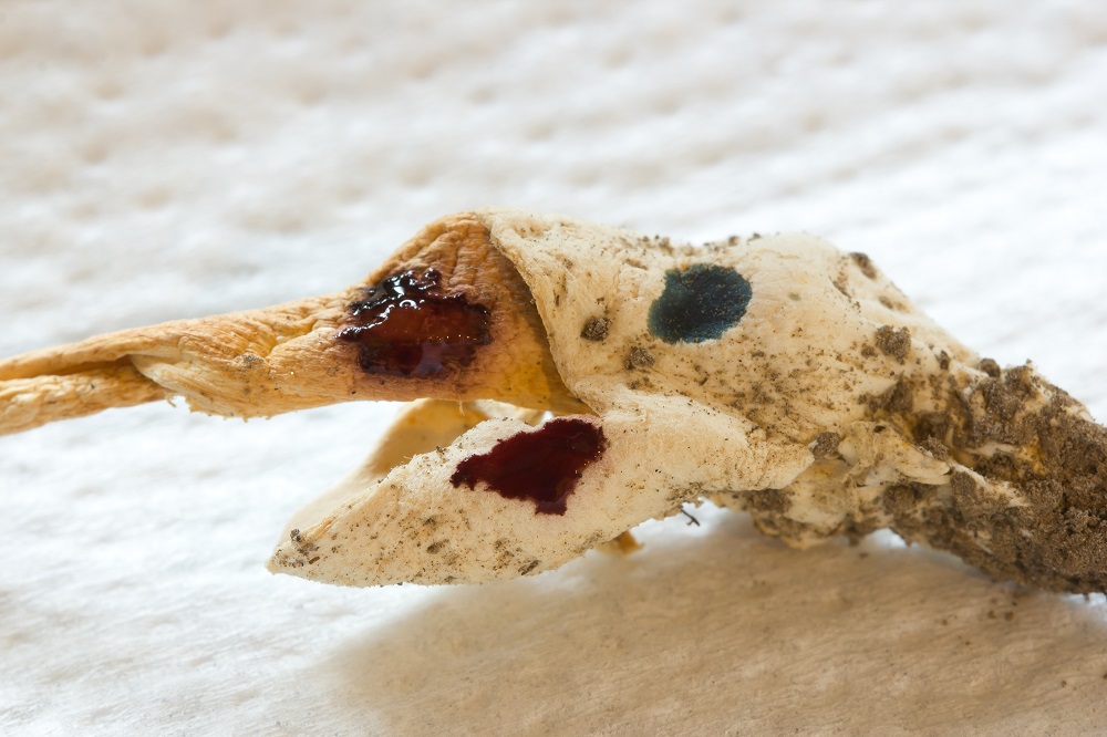 Fleisch: weißlich, dünn; unter der Huthaut orange; Geruch und Geschmack unbedeutend; Stielfleisch verfärbt mit Phenol weinrot